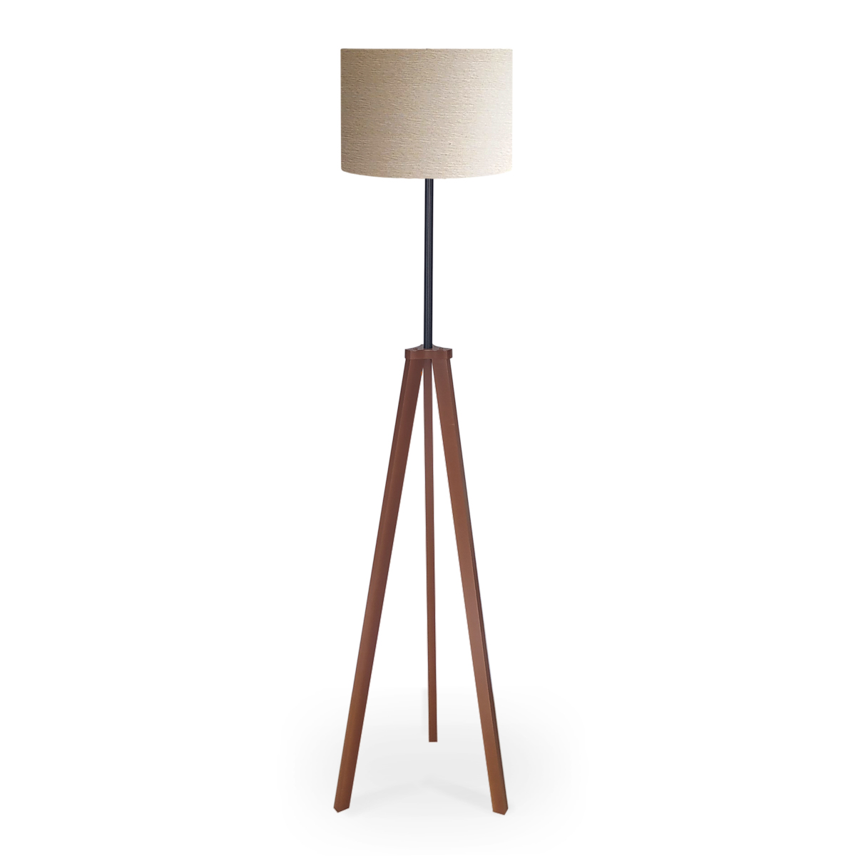 Luminária de Chão Tripé com Cúpula de Tecido Linho Cru